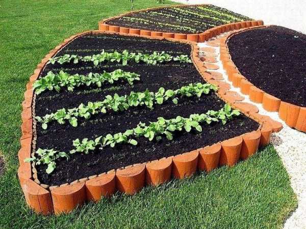 Красивые грядки, созданные при помощи бревнышек.