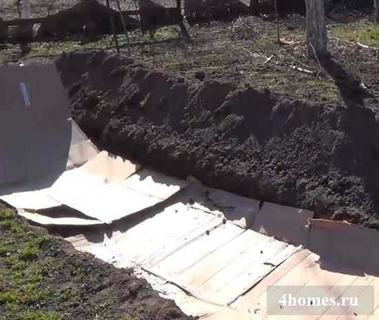 Застелите дно траншеи толстым картоном.