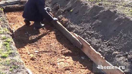 Выложите периметр старыми досками до уровня поверхности земли.