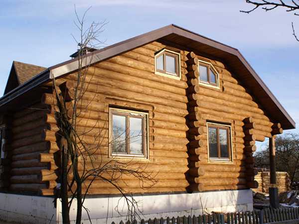 Традиционный двускатный вариант подходит для загородных коттеджей и дачных домов из оцилиндрованного бревна или другого материала. В данном случае два ската опираются на стены строения и соединяются металлическим коньком. Причем скаты могут быть разных размеров и соединены под разным углом.
