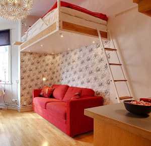На сегодняшний день хотелось бы продемонстрировать этот красивый интерьер маленькой квартиры, расположенной на Монмартре в Париже. Удивительный и заманчивый вид был разработан архитекторами агентства SWANс несомненным вкусом. Эта очаровательная квартирка имеет площадь не более 25 квадратных метров и состоит из одной комнаты, пространство которой было разумно разделено на спальню и гостиную. Белые панельные шкафы на всю длину стены, расположенные напротив окон гарантируют более высокий уровень естественного освещения в течение дня. Ванная комната удобно скрыта в задней стенке квартиры. Цветовая палитра особенно привлекательна за счет контраста между деревянным темным полом и светлой мебелью.