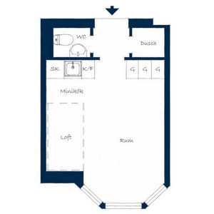 При условии, что житель не обременен большим количеством бытовых вещей, этот интерьер маленькой в 21 кв.м. квартиры просто идеален. Это невероятно, как шведским дизайнерам студии Skeppsholmen удалось превратить такое маленькое пространство в просторное и удобное. Проект характеризуется хорошим вкусом и оригинальностью. Когда вы войдете, прихожая делит ванную комнату на два небольших, но функциональных помещения. Единственная комната залита солнечным светом из трех окон. Раздвижной диван и дополнительная кровать означают, что здесь могут с комфортом разместиться три человека. Существует даже место приготовления пищи, хранения посуды и еще много чего. Никаких компромиссов, все выглядит отлично, с прекрасными черными и белыми обоями с красочной плиткой в санузле.