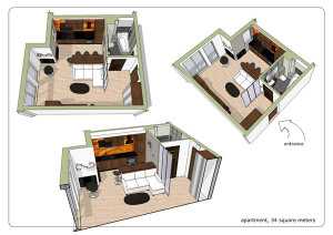 Здесь придется отказаться от стандартных приемов, необходимо спроектировать что-то оригинальное, особенное для того, чтобы на небольшом пространстве создать удобное и уютное жилье.
