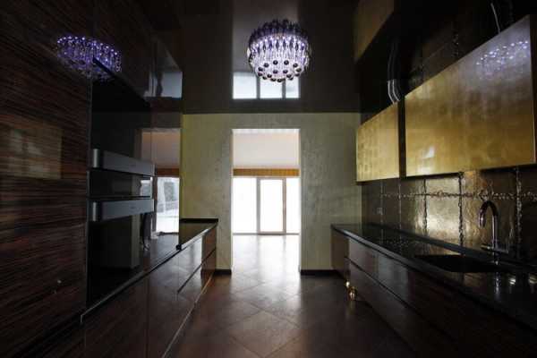 Черный цвет используют редко. Подходит для высоких и больших помещений. Важно определиться с оттенками черного, иначе может создаться впечатление отсутствия потолка.