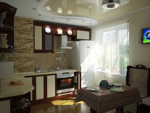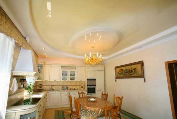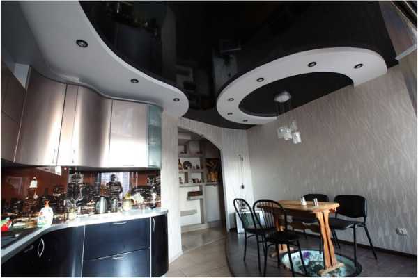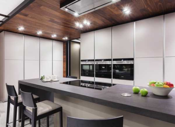 Ко всему этому, современный дизайн потолка на кухне нередко предполагает: