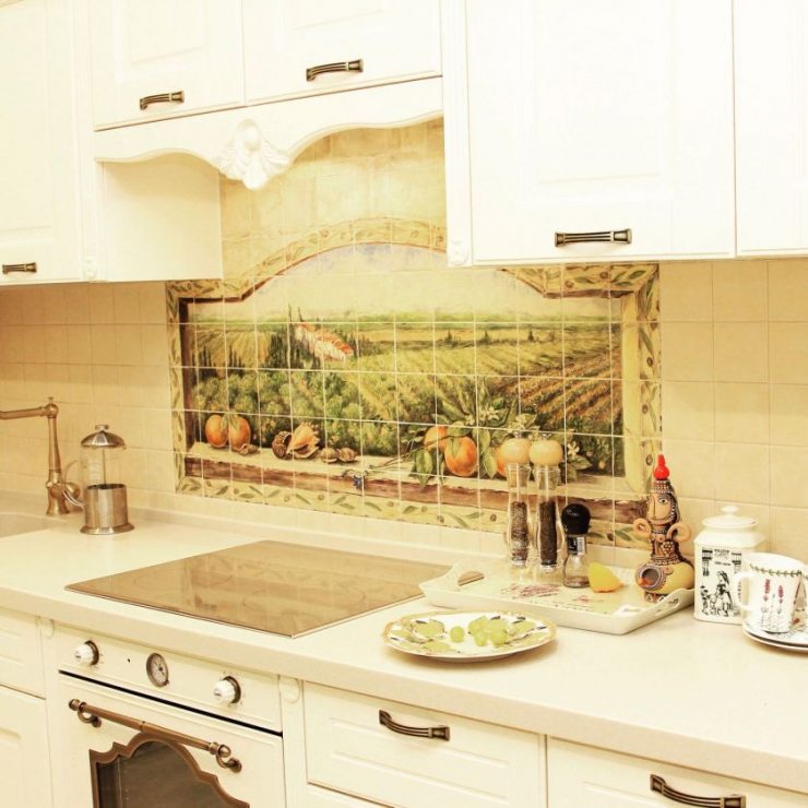 Идеи для кухонного фартука из кафеля диктует дизайн материала. В продаже есть готовые комплекты с бордюрами, вставками, есть модели с общим или абстрактным рисунком, в виде панно. Подбирается дизайн кухонного фартука из кафельной плитки с учетом общей концепции обустройства дома, цвета отделки, мебели. В последнее время востребована керамика с фотопечатью. Выбирать кухонный кафель по фото в интернете удобнее всего. На сайтах, занимающихся продажей плитки, можно самостоятельно рассчитать ориентировочную стоимость материала, что очень актуально при ограниченном бюджете.