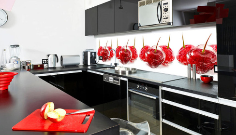 Стекло при обустройстве кухонь начали использовать сравнительно недавно. Материал практичен в эксплуатации, безопасен. Наиболее оригинален дизайн фартука для кухни с фотопечатью, боковой подсветкой.