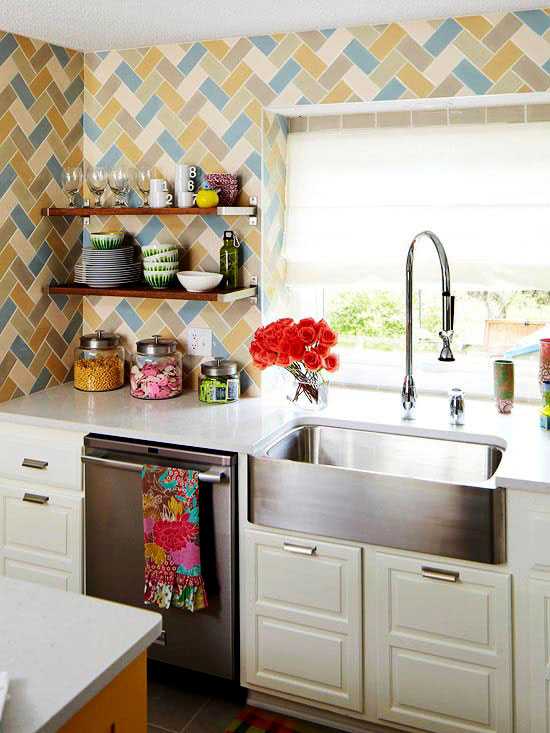 Если вас привлекают красивые кухонные фартуки, и вы намерены в ближайшее время обзавестись собственным, не ограничивайтесь только традиционной керамической плиткой при выборе материала. Помните, что существует множество практичных и доступных способов оформить стену над кухонной плитой.