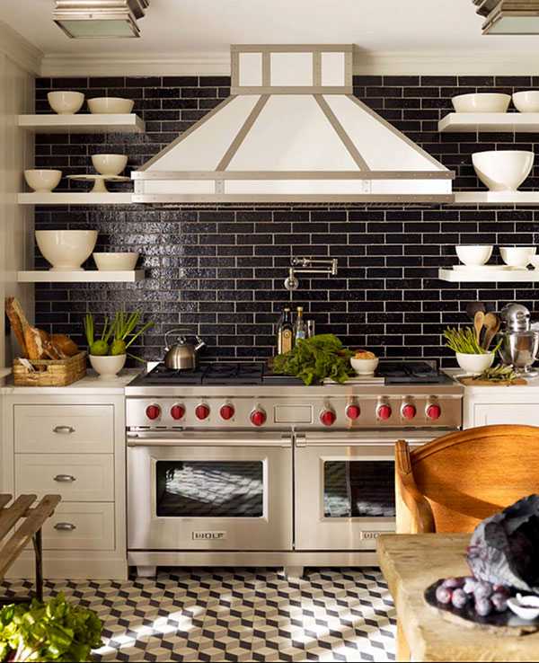 Существует сотни способов выложить плитку на стене, но нам особенно захотелось отметить следующий: вместо того, чтобы создавать яркие и необычные узоры, дизайнер этой кухни уложил плитку в аккуратные столбики, которые визуально увеличивают размеры кухни и придают ее стенам интересный эффект.