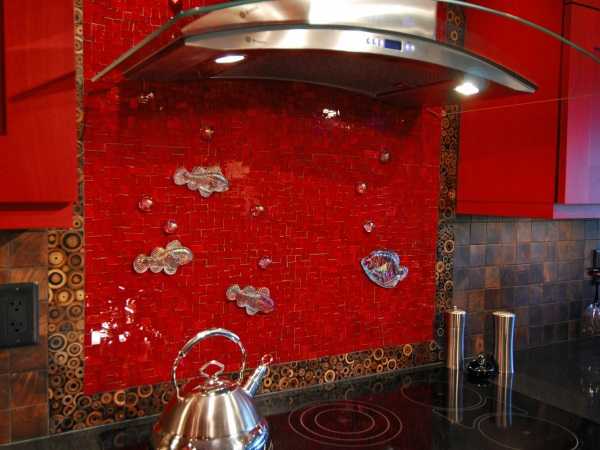Кухонный фартук для многих дизайнеров — как пустой холст. Чего только не придумают! Например, дизайнер Джон Рыба разработал для кухни этот уникальный настенный аквариум со стеклянными рыбами и пузырями внутри.