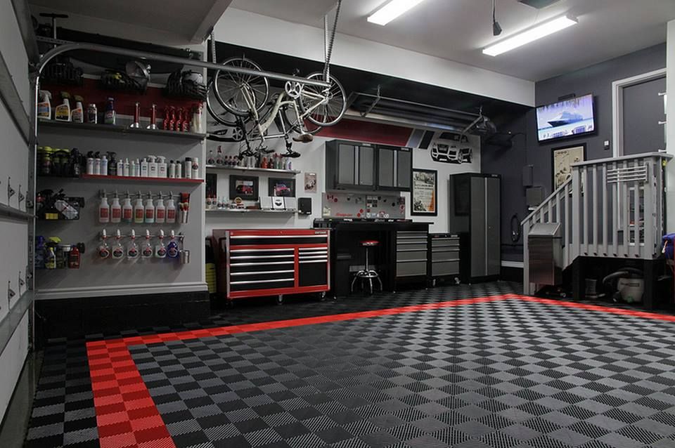 Π€Π°Π½ΡΠ°ΡΡΠΈΡΠ΅ΡΠΊΠΈ ΠΎΡΠ³Π°Π½ΠΈΠ·ΠΎΠ²Π°Π½Π½ΡΠΉ Π³Π°ΡΠ°ΠΆ Ρ ΡΠ΅ΡΡΠΌΠΈ ΡΠΏΠΎΠΊΡΠΈΠ΄Π½ΡΠΌΠΈ ΠΏΠΎΠ»Π°ΠΌΠΈ ΠΈ Π±Π΅Π»ΡΠΌΠΈ ΡΡΠ΅Π½Π°ΠΌΠΈ.