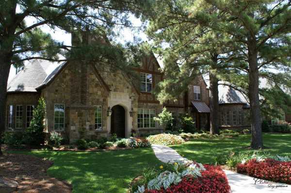 Выбирая саженцы кустов и деревьев, учитывают высоту взрослых растений и плотность кроны, чтобы через несколько лет растительность не затенила участок возле дома. Ограждение с внутренней стороны двора маскируют кустарниками или плотной живой изгородью. Оформляя беседки, перголы, шпалеры, фасад загородного дома, используют ампельные растения. Особенное внимание уделяют разбивке клумб и созданию цветочных композиций. Возможные варианты цветников для выполнения своими руками:
