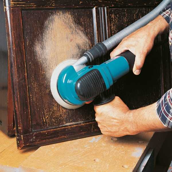 Еще один метод, с помощью которого можно счистить старое покрытие, предполагает использование шлифовальной машинки или просто шлифшкурки. Однако, если нужно реставрировать шпонированную мебель, следует учитывать, что первоначально она имеет гладкую и идеально ровную поверхность, а в результате такой чистки может потерять глянцевый блеск. Поэтому заранее необходимо продумать, какая поверхность нужна: глянцевая либо матовая. В случае необходимости глянцевой поверхности, ее покрывают слоем лака.