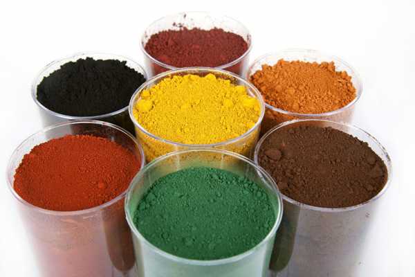 - природные – получают посредством механической переработки различных материалов. Это сурик (пигмент для бетона) железный, каолин, охра, умбра, перекись марганца, известь, графит, мел;