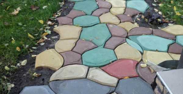 - цветной бетон, полученный этим методом, может применяться при монолитной заливке подпорных стенок, площадок, цветных бетонных дорожек.