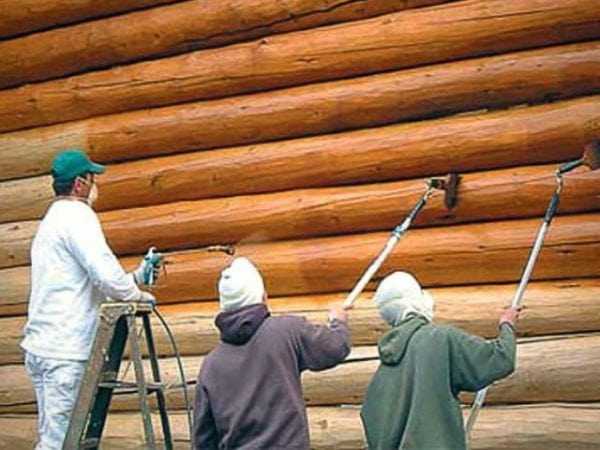 До применения красящих составов дерево обрабатывают специальными средствами, проникающими в глубину через поры. Дом из бруса обязательно обрабатывают: