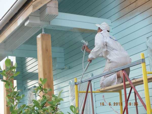 Окрасить дом можно кистью или с помощью краскопульта, однако последний способ требует разведения краски, что для многих составов нежелательно.