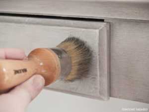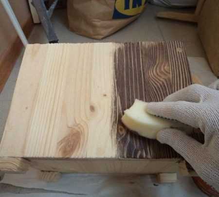 - Взять специальную тряпку и начать тереть по краске до обнаружения древесной поверхности. В результате не полностью высохшего слоя средство стирается неравномерно, поэтому и создается эффект изношенности.