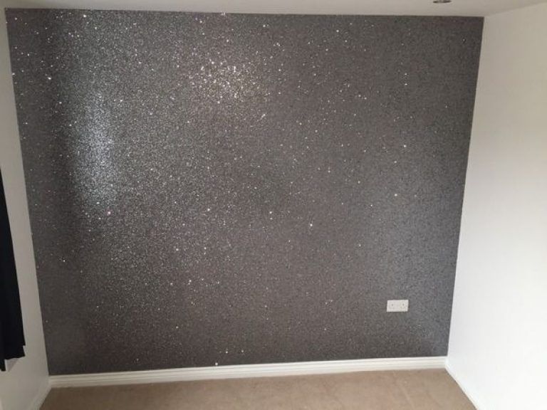 - Смешать блёстки не с краской, а каким-то клеящим составом, чтобы потом размазать по стене. Или смазать стену клеем, а потом, как в предыдущем случае, разбросать блёстки.