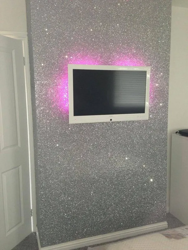В продаже можно много возможностей, чтобы придать стенам сверкание, можно добавить блестки в краску для стен.