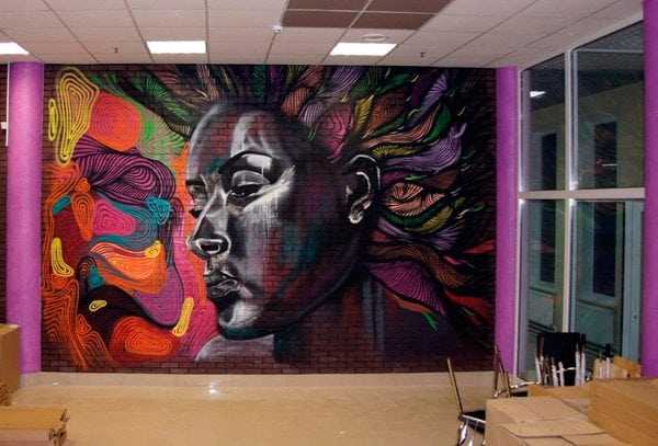 Это могут быть штукатурка, обои, металл, бетон или любые другие. Можно купить универсальные краски, подходящие для любых оснований. Но лучше подбирать с учетом характеристик материала — такой подбор обеспечит более высокое качество и долговечность рисунка.