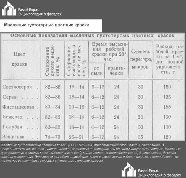 Этот вид покрытия производятся на основе олифы, с добавлением красящего пигмента и защитных компонентов. На сегодняшний день оно все реже используются для наружных работ, так как его технические характеристики достаточно сильно уступают более современным лакокрасочным материалам.