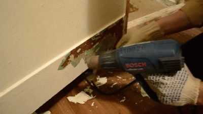- При использовании термопистолета слой краски нагревается и плавится, после чего легко удаляется шпателем. Материал при этом может выделять токсичные вещества, появляется запах гари, поэтому работа в помещении запрещена.