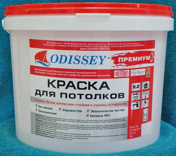 Перед тем как выбрать водоэмульсионную краску для потолка, необходимо тщательно изучить упаковку. На этикетке производитель указывает рекомендуемую сферу применения и другие моменты: