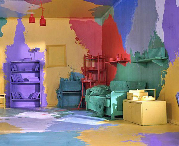 Вначале эмульсию разводят в небольшой емкости и наносят валиком на картонный пробник. Выбор цветового решения чаще всего зависит от помещения: если окна выходят на юг, комнату охлаждают с помощью синей, зеленой и фиолетовой краски; помещение в северной части дома окрашивают в оттенки желтого, красного или коричневого тона.