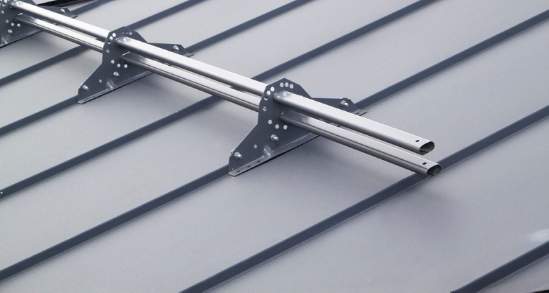Однако, даже на этом этапе монтаж покрытия и вообще отделка кровли еще не закончены. Вам предстоит еще одно дело – крепить на металлочерепицу снегозадержатели – если делать все правильно, без них нельзя, так как этот элемент нужен для безопасности. Некоторые для этого берут простой уголок из металла, но, он выглядит не слишком привлекательно. Готовое решение из металлической трубы поставляется вместе с креплениями, на которых она будет держаться. Фиксация идет просто: там, где стены стыкуются с крышей, к кровле крепят систему снегозадержания на саморезы с шайбами из резины.
