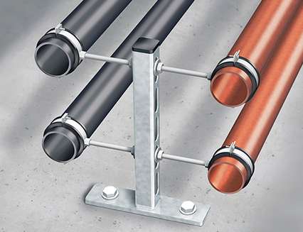 Если расстояние между крепёжными хомутами будет больше, чем нужно, то это может привести к прогибанию труб на горизонтальных участках и появлению на них защемлений в области опор.