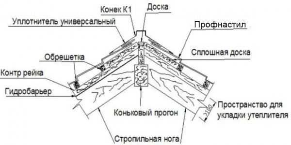 Гладкие коньковые элементы лучше всего подходят для выполнения коньковой планки. Специалисты советуют, прокладывать между листами покрытия и гладкими элементами конька дополнительный уплотнитель, который непременно должен быть проветриваемым. Укладка конькового уплотнителя производится в том случае, если у листов достаточно мелкая гофра.
