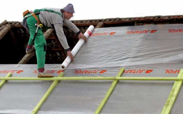 Гидроизоляция защищает утеплитель, как от атмосферной влаги, так и от конденсата, образующегося на внутренней стороне кровельного покрытия при резких перепадах температуры воздуха. Гидроизоляционная мембрана раскатывается поверх стропил с нахлестом в 150 мм и закрепляется брусками контробрешетки. Кроме решения перечисленных выше задач, качественно выполненная гидро- и пароизоляция уменьшают потери тепла через кровельное покрытие приблизительно на 25%.