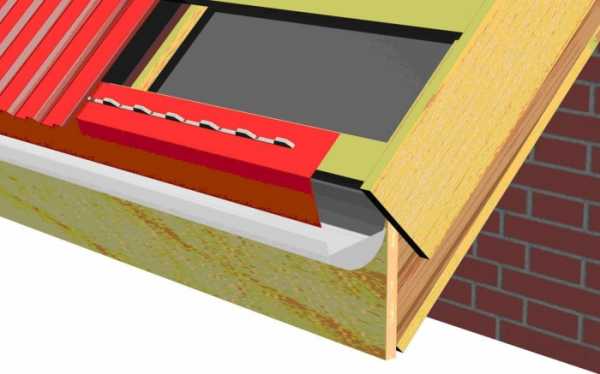 Очень важно, чтобы слой гидроизоляции расположен был выше карнизной планки. В этом случае конденсат с гидроизоляционного материала будет попадать, минуя карнизную планку прямо на землю.