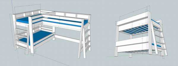 Чтобы разобраться, как сделать двухъярусную кровать, необходимо подготовить комплект чертежей – примеры представлены ниже. Для стандартной конструкции, рассчитанной на двух подростков, можно выбрать следующие параметры: