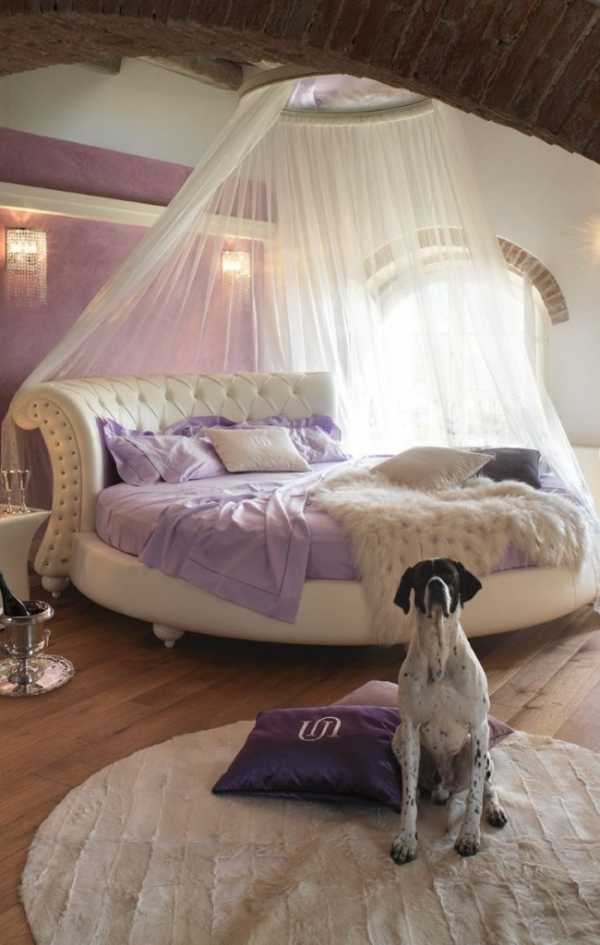 Однако, если вы хотите безукоризненной гармонии цвета, форм, ощущений и наполнения, энергии и настроения, выберите круглую кожаную кровать в цвете бордо, темно-синем или зеленом, насыщенно-шоколадном. Отделочные материалы, или аксессуары, или текстиль — под стать. Украшением спальни в одном из исторических стилей станет оформление стразами, каменьями, жемчугом изголовья кровати. Изысканная идея — вышивка, однако мастер должен быть ассом! Как вариант для некоторых стилей — высокое изголовье, отражающее «царственность» и величие спального ложа-места.