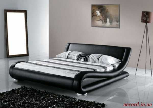 - Традиционное решение – черная кожаная кровать. Модели такого цвета отлично подходят для интерьеров хай-тек, минимализм и модерн. В черном цвете изготавливают и классические кровати. Более выигрышно выглядят модели с минимальным декором, но с оригинальной формой. Такие кровати часто размещают в спальнях с белыми стенами.
