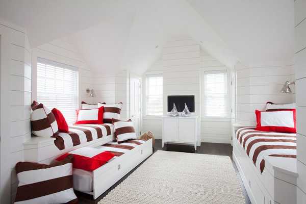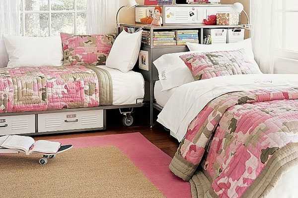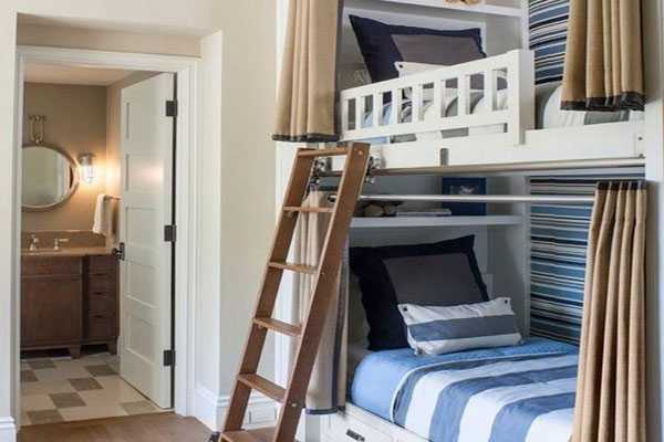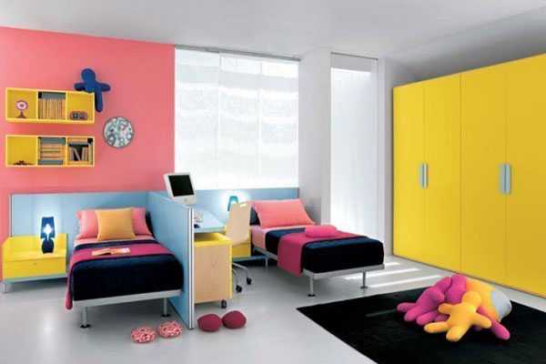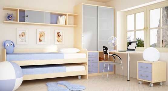Расположение кроватей: двухъярусная кровать подойдет, но все же лучше поставить кровати в противоположных углах комнаты.