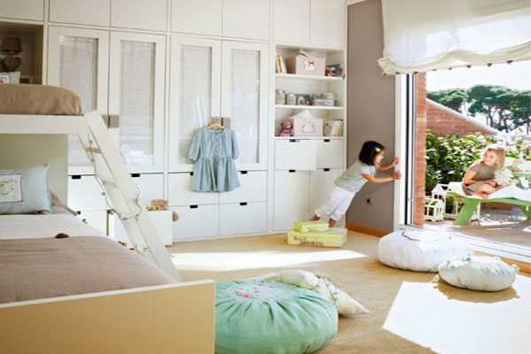 Организация хранения: естественно, что детям понадобятся отдельные шкафчики и полки для хранения одежды, обуви и многого другого. Не забывайте, что старшие очень не любят, когда младшие трогают или перекладывают их вещи.