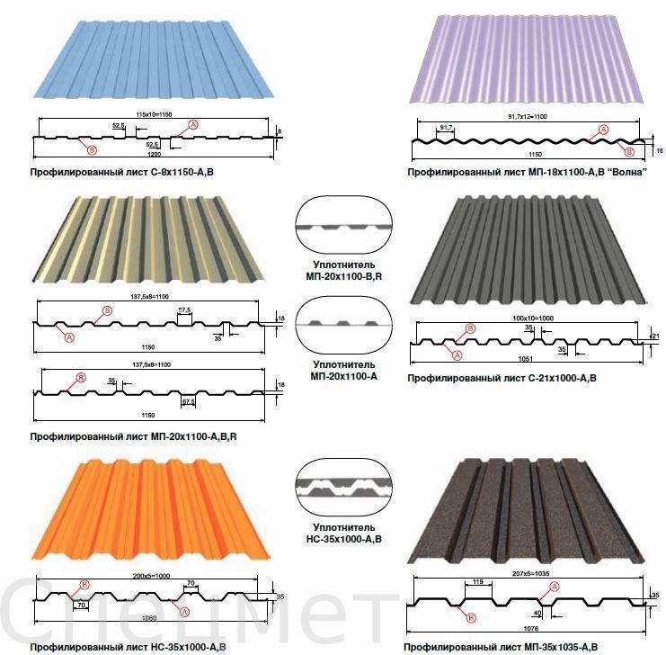 Отличается не только размер профнастила для кровли, лист может быть разной толщины, ширины, формы гофры.