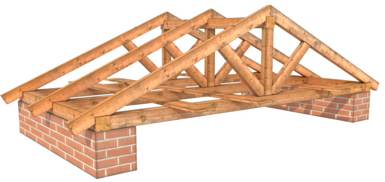 Обычная двускатная крыша представляет собой конструкцию состоящую из двух наклонных под одним углом скатов, состоящих из деревянных стропил связанных между собой обрешеткой, каждое из которых, с одной стороны, опирается друг к другу, а с противоположной стороны прочно закреплены к несущим стенам с помощью обвязочного мауэрлата.