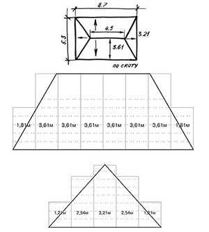 В итоге каждый из скатов, каждая плоскость кровли получить свое изображение на бумаге в плане, в виде двухмерной фигуры с четко проставленными размерами, выдержанными в определенном масштабе.