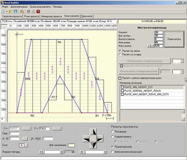 Прежде всего, нужно с высочайшей точностью промерить все параметры крыши. Это не составит большого труда, например, на обычной двускатной или односкатной кровле, но если стропильная система имеет вальмовою или шатровую конструкцию, изобилует дополнительными архитектурными элементами – шпилями, башенками и тому подобное, то повозиться придется изрядно. Тем более что очень большое значение будут иметь не только линейные размеры, но и точные углы получающихся фигур.