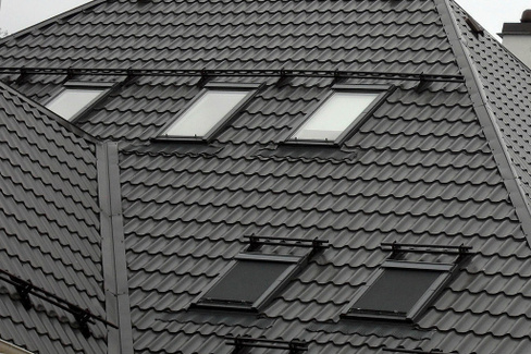 Мансардное окно в стиле velux с черной черепицейPREMIUM