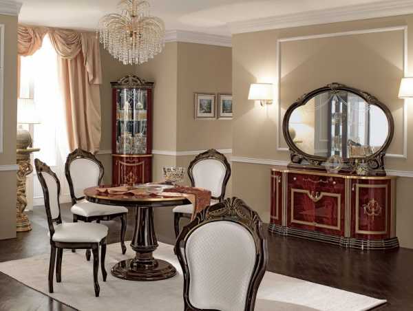 ΠΠΎΠ½ΡΡΠ°ΡΡΠ½ΡΠΉ ΠΈΠ½ΡΠ΅ΡΡΠ΅Ρ ΠΊΠ»Π°ΡΡΠΈΡΠ΅ΡΠΊΠΎΠΉ ΡΡΠΎΠ»ΠΎΠ²ΠΎΠΉ ΠΏΡΠ΅Π΄ΠΏΠΎΠ»Π°Π³Π°Π΅Ρ Π³Π°ΡΠΌΠΎΠ½ΠΈΡΠ½ΠΎΠ΅ ΡΠΎΡΠ΅ΡΠ°Π½ΠΈΠ΅ ΠΎΡΡΠ΅Π½ΠΊΠΎΠ² ΡΠ΅ΠΌΠ½ΡΡ ΠΏΠΎΡΠΎΠ΄ Π΄ΡΠ΅Π²Π΅ΡΠΈΠ½Ρ ΠΈ ΠΌΡΠ³ΠΊΠΎΠΉ, Π½Π΅ΠΉΡΡΠ°Π»ΡΠ½ΠΎΠΉ ΠΏΠ°Π»ΠΈΡΡΡ ΠΌΠ΅Π±Π΅Π»ΡΠ½ΠΎΠΉ ΠΎΠ±ΠΈΠ²ΠΊΠΈ, ΡΠ΅ΠΊΡΡΠΈΠ»Ρ ΠΈ ΠΎΡΠ΄Π΅Π»ΠΊΠΈ ΠΏΠΎΠΌΠ΅ΡΠ΅Π½ΠΈΡ. ΠΡΠΈΡΡΡΡΡΠ²ΠΈΠ΅ Π² ΠΈΠ½ΡΠ΅ΡΡΠ΅ΡΠ΅ Π±Π»Π΅ΡΡΡΡΠΈΡ , Π·Π΅ΡΠΊΠ°Π»ΡΠ½ΡΡ ΠΏΠΎΠ²Π΅ΡΡ Π½ΠΎΡΡΠ΅ΠΉ Π΄ΠΎΠ±Π°Π²Π»ΡΠ΅Ρ ΠΎΠ±ΡΡΠ°Π½ΠΎΠ²ΠΊΠ΅ Π³Π»Π°ΠΌΡΡΠ° ΠΈ ΠΎΡΠ°ΡΠΎΠ²Π°Π½ΠΈΡ ΡΠΎΡΠΊΠΎΡΠΈ.
