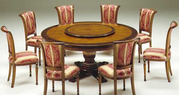 ΠΡΡΠ΅ΡΡΠ²Π΅Π½Π½ΠΎ, Π²ΡΠ±ΠΈΡΠ°Ρ Π΄ΠΈΠ·Π°ΠΉΠ½ ΠΊΡΡΠ³Π»ΠΎΠ³ΠΎ ΡΡΠΎΠ»Π°, Π½ΡΠΆΠ½ΠΎ ΡΡΠΈΡΡΠ²Π°ΡΡ ΠΈ ΡΡΠΈΠ»Ρ ΡΠ°ΠΌΠΎΠΉ ΠΊΠΎΠΌΠ½Π°ΡΡ. Π Π±ΠΎΠ»ΡΡΠΈΠ½ΡΡΠ²Π΅ ΡΠ»ΡΡΠ°Π΅Π², ΠΊΡΡΠ³Π»ΡΠ΅ ΡΡΠΎΠ»Π΅ΡΠ½ΠΈΡΡ ΠΏΠΎΠ΄Ρ ΠΎΠ΄ΡΡ ΠΏΠΎΠ΄ Π»ΡΠ±ΠΎΠΉ ΠΈΠ½ΡΠ΅ΡΡΠ΅Ρ, Π½ΠΎ ΡΡΡΠ΅ΠΊΡΠ½Π΅Π΅ ΡΠ°ΠΊΠΎΠΉ ΡΡΠΎΠ» Π²ΡΠ³Π»ΡΠ΄ΠΈΡ Π² ΠΊΠ»Π°ΡΡΠΈΡΠ΅ΡΠΊΠΎΠΌ ΡΡΠΈΠ»Π΅.