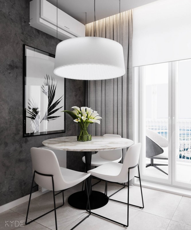 Такие модели выглядят изящнее, но лишены мобильности. Трансформеры же смотрятся чуть более массивно за счет спрятанной внутри выдвижной части, но зато позволяют при необходимости увеличить площадь стола. Так, в обычное время это может быть обеденная зона для двоих, а когда приходят гости, здесь получится разместить четырех, а иногда и сразу шесть человек. При выборе модели опирайтесь на количество жильцов и образ жизни. Например, если это студия для одного человека, который редко устраивает посидели с друзьями дома, будет достаточно и легкого столика. А вот молодой семье наверняка понадобится трансформер.