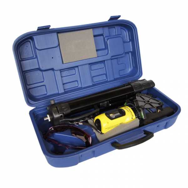 Прибор снабжён многофункциональным штативом для работы с горизонтальной поверхностью или возможностью фиксации на различных металлоконструкциях. Световой луч работает в режиме пульсации. Инструмент отличается компактными размерами и малым весом.