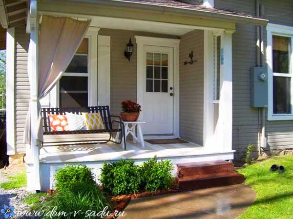 Шторы и занавески, которые украшают дачные беседки, можно использовать и для дизайна крыльца. Они создадут тень и спрячут вас от солнца.