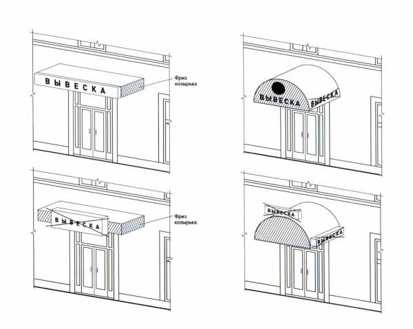 При наличии на фасаде объекта настенная конструкция может быть размещена на фризе козыпька строго в габаритах указанного фриза (пункт 18.3.4 Правил).